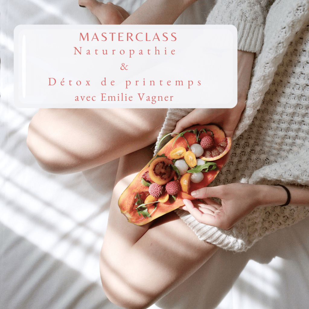 A cette occasion je vous propose une masterclass en ligne unique de 1h30 afin de vous partager les clés naturopathiques qui vous permettront d'engager votre corps et votre esprit dans un travail doux et puissant de détoxification printanière : alimentation hypotoxique, mouvement, gestion du stress, usage des plantes et des compléments, cures de jus de légumes et de sève de bouleau. Tous ces thèmes seront abordés lors de cette masterclass que vous pourrez revisionner en replay à volonté !